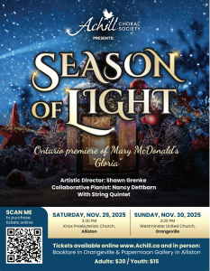 Saturday, November 29 – Knox Presbyterian Church, Alliston, 3:30 pm